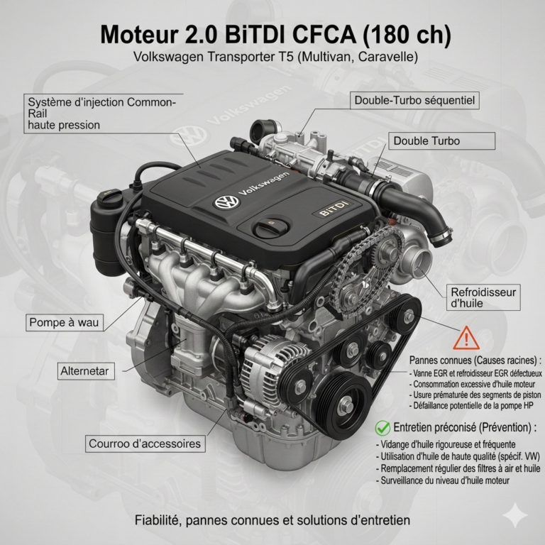 Problème moteur CFCA : symptômes, pannes connues et solutions sur Volkswagen Transporter T5 BiTDI (Caravelle, Multivan)